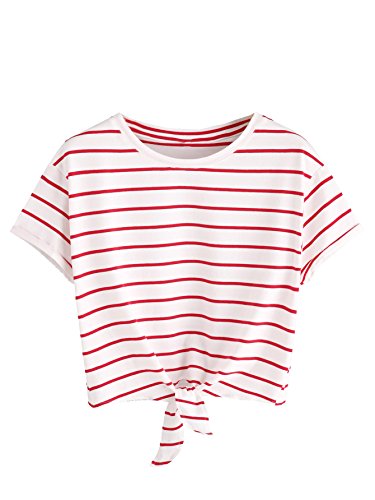 ROMWE Womens Knot Long Sleeve Striped Crop Top T-shirt